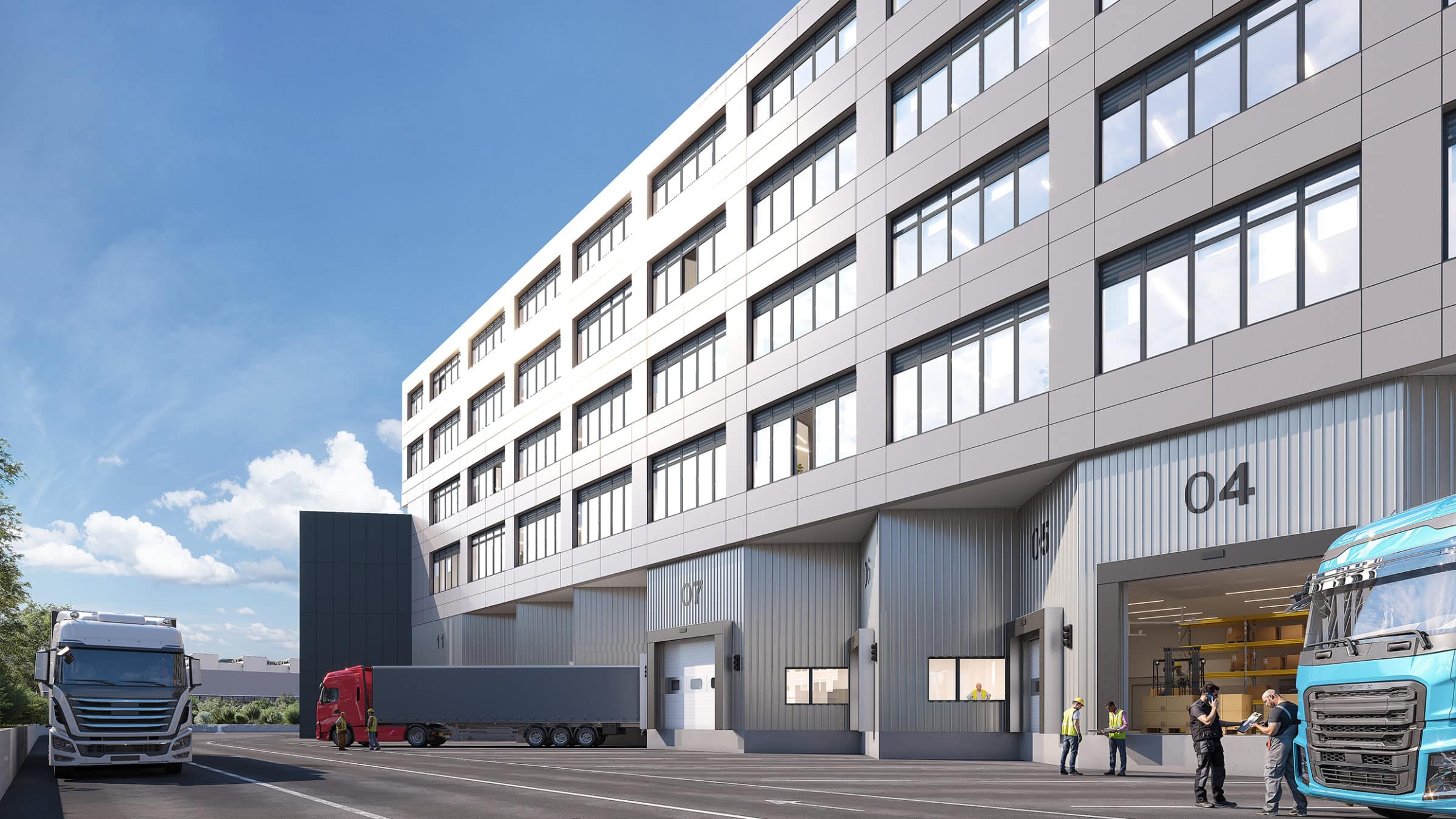 L’accès logistique aux étages est facilité par 10 quais de déchargement pour les poids lourds, ainsi que 6 monte-charges d’une capacité maximale de 6 tonnes. Les surfaces bénéficient par ailleurs d’une belle hauteur sous plafond jusqu’à 6.90 mètres et d’une charge utile sur les dalles de 1’500 kg/m2 au rez-de-chaussée et au 1er étage et de 1’200 kg/m2 aux étages supérieurs.
